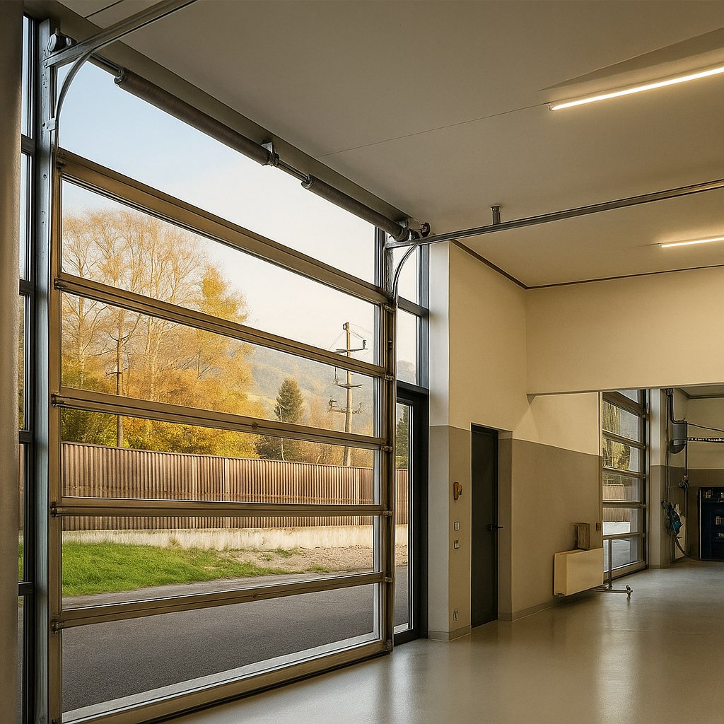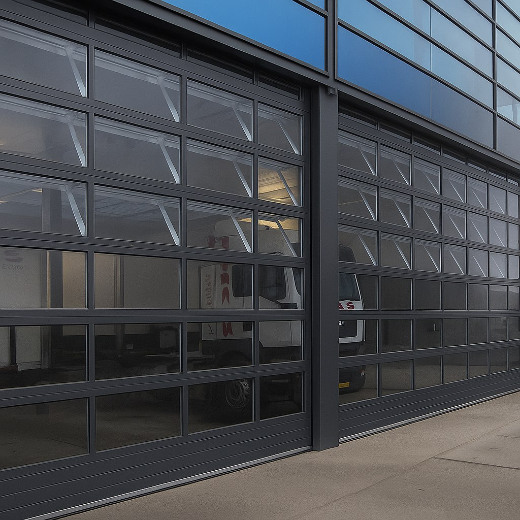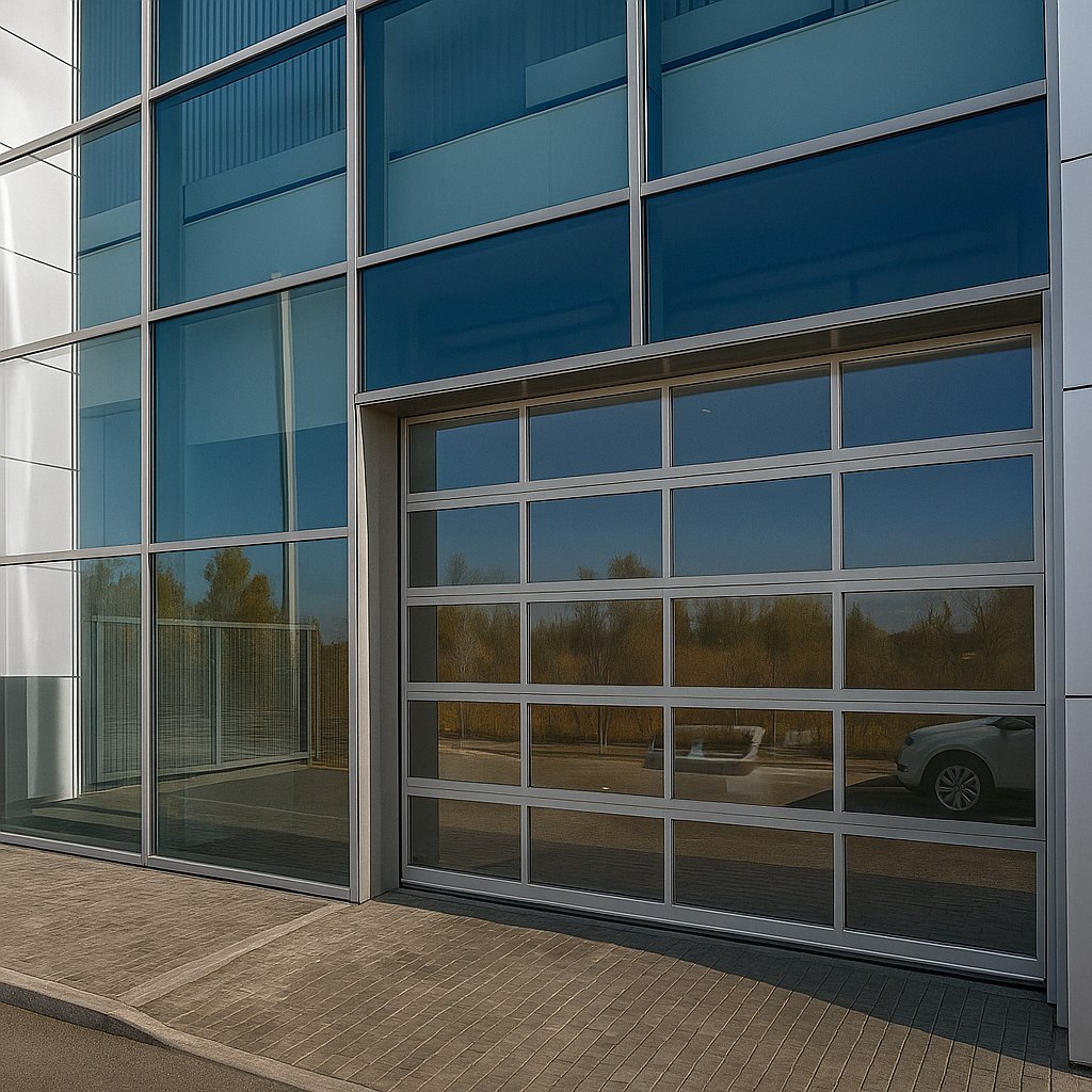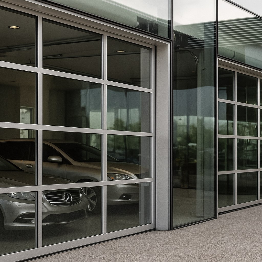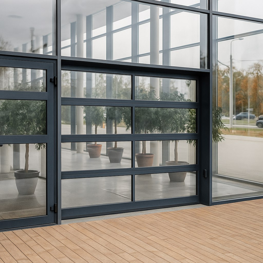 - Максимальный естественный свет и обзорность: Благодаря большой площади остекления, ворота AluTherm наполняют помещение дневным светом, снижая затраты на электроэнергию. Они также позволяют эффективно демонстрировать продукцию или процессы внутри помещения круглосуточно, что особенно ценно для автосалонов и выставочных площадок.