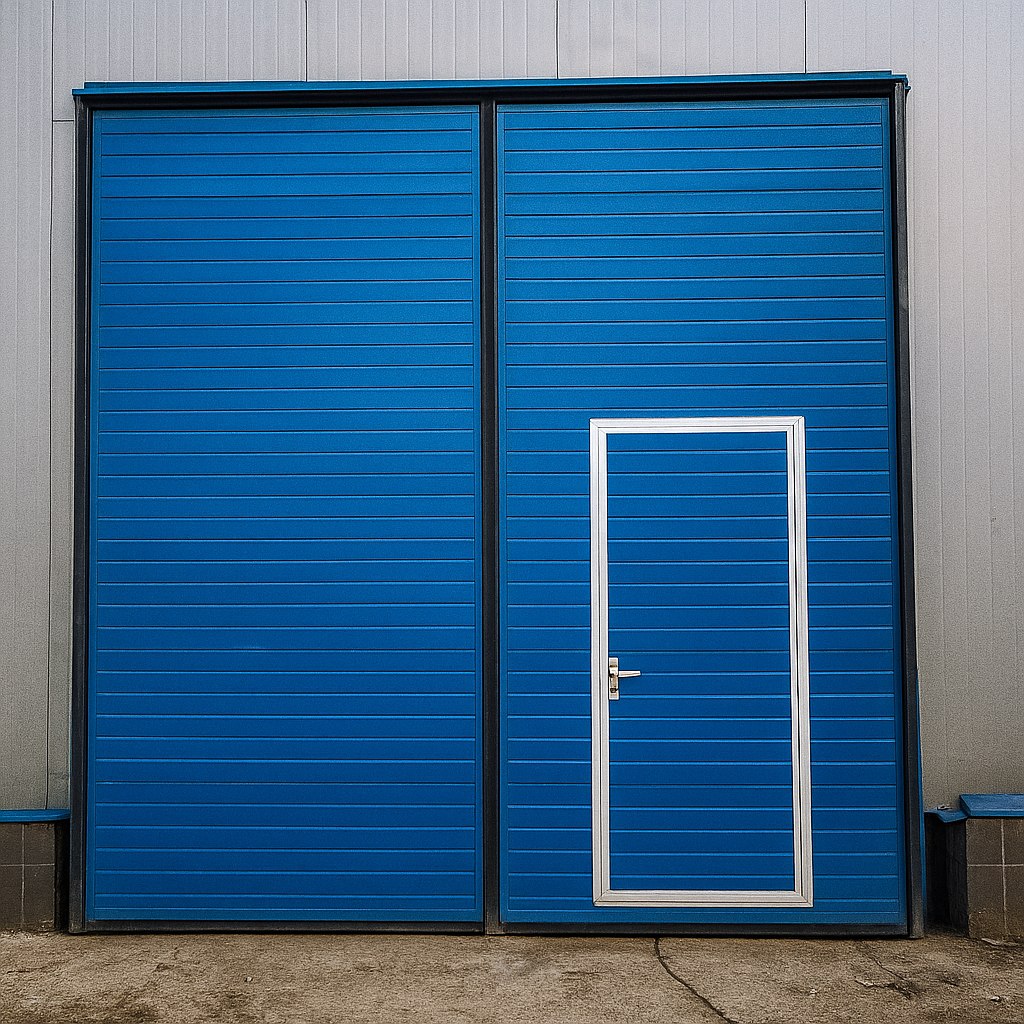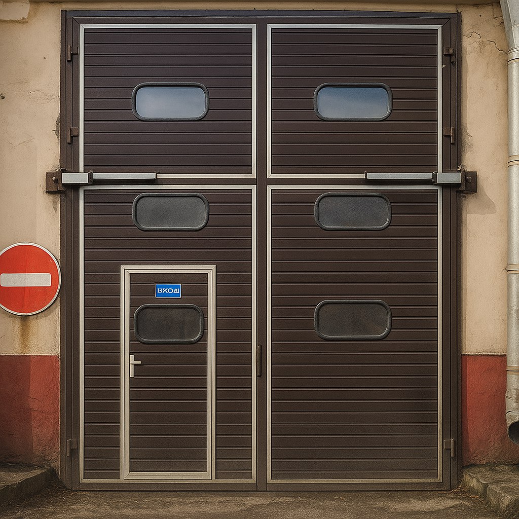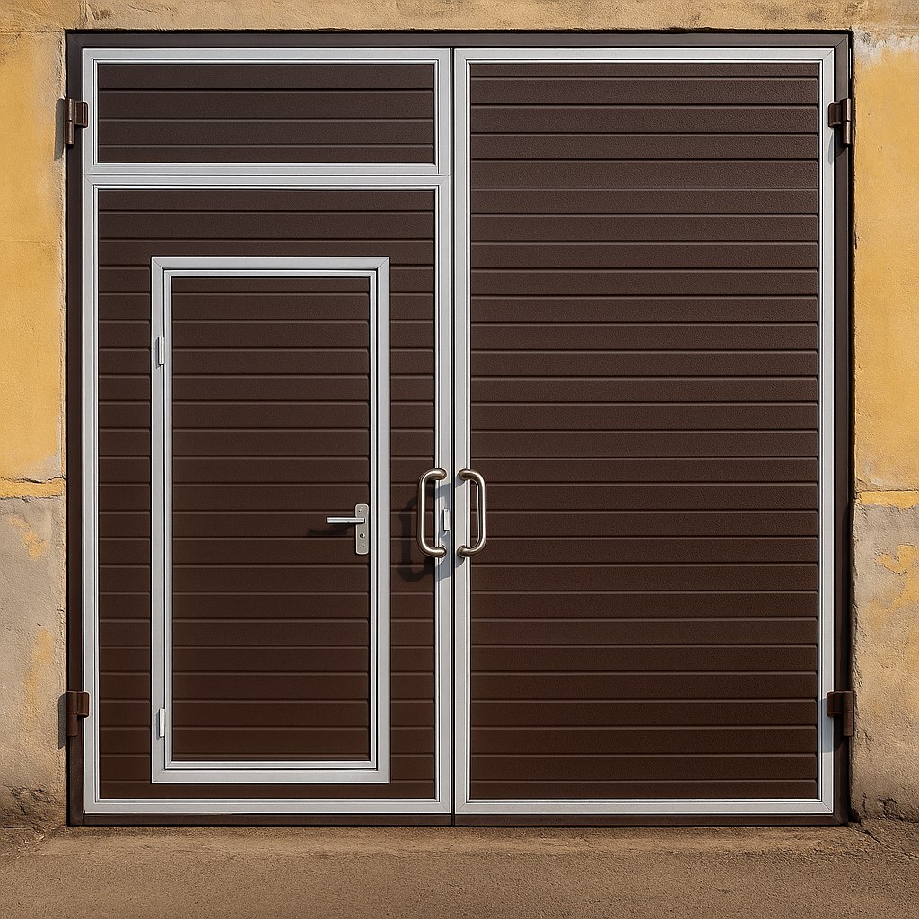 Распашные ворота в здание из сэндвич панелей