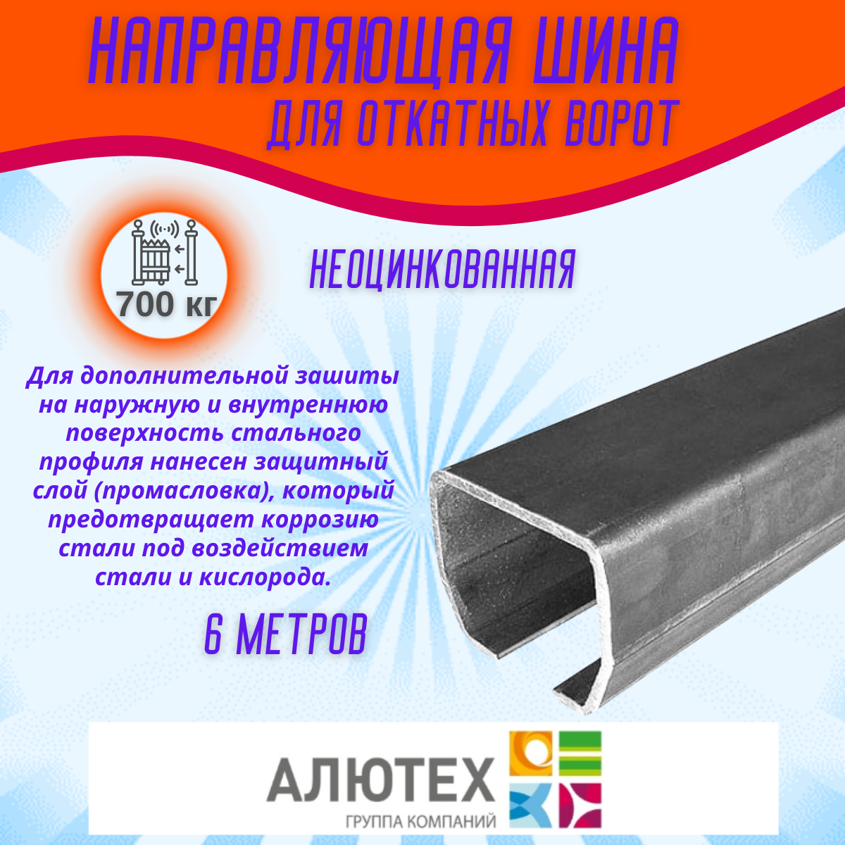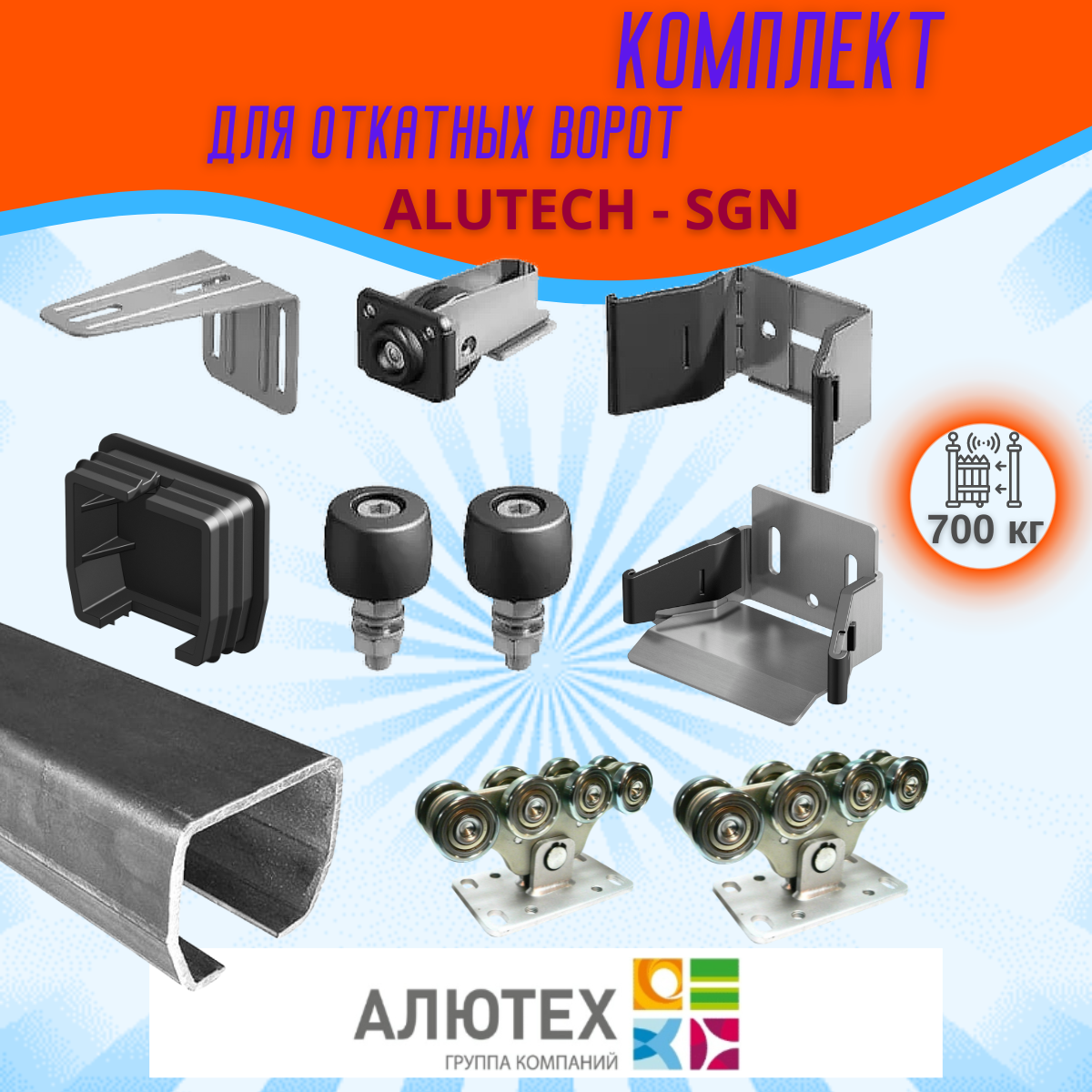 Комплект для откатных ворот ALUTECH SGN.02 с неоцинкованной шиной