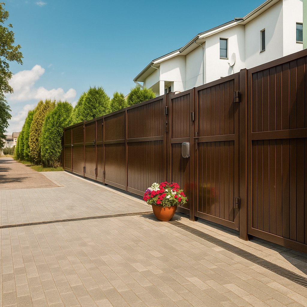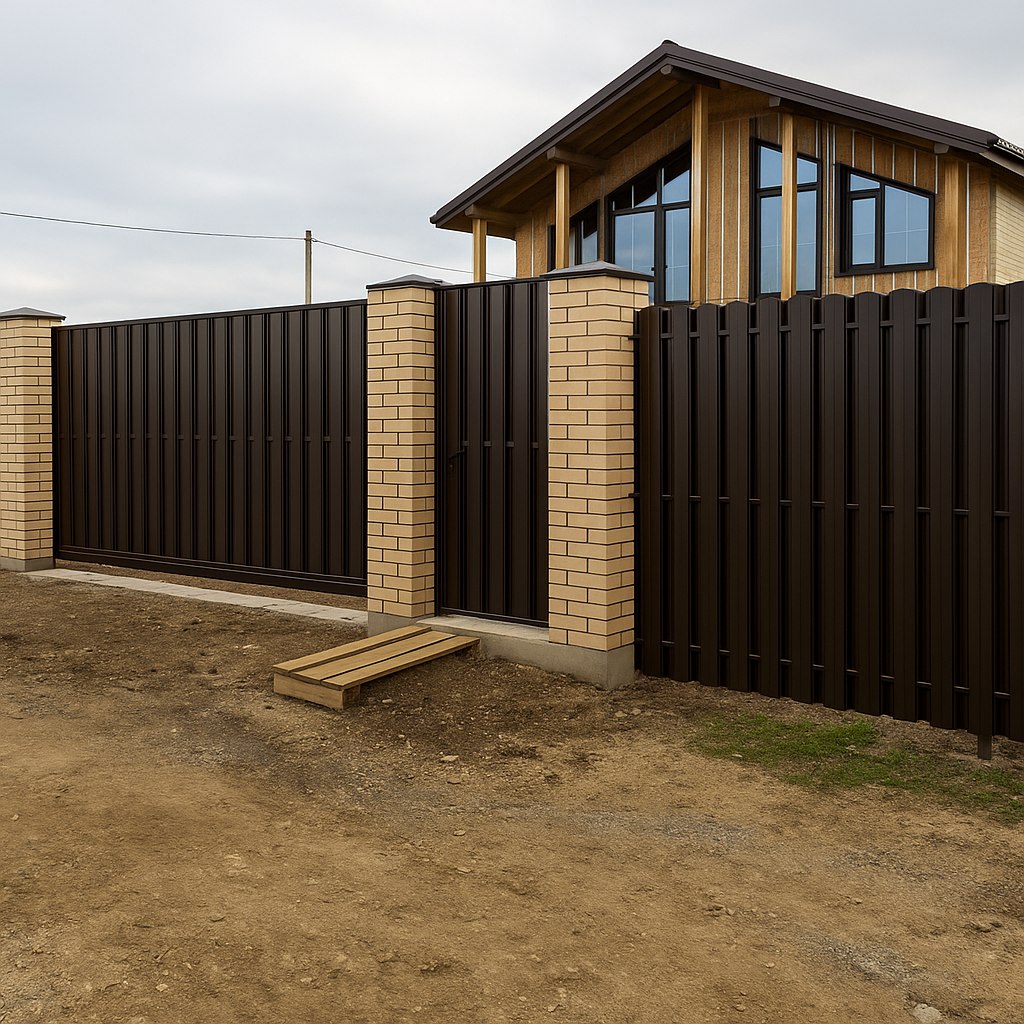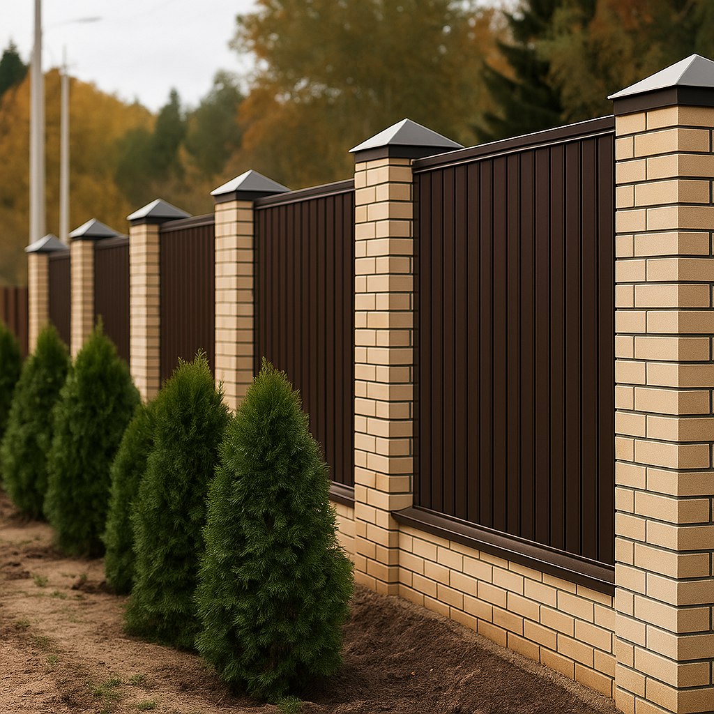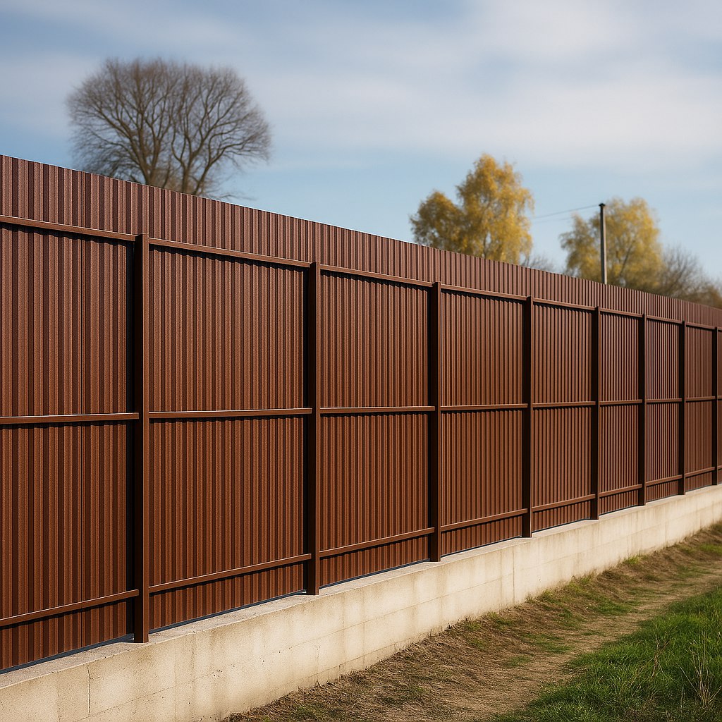 Заборы из профнастила (металлопрофиля): Идеальный выбор для тех, кто ценит максимальную приватность и надежную защиту от ветра и шума. Это практичное и доступное решение для ограждения периметра.