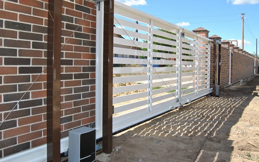 Компактность: не требуют места перед въездом, работают в одной плоскости с забором.