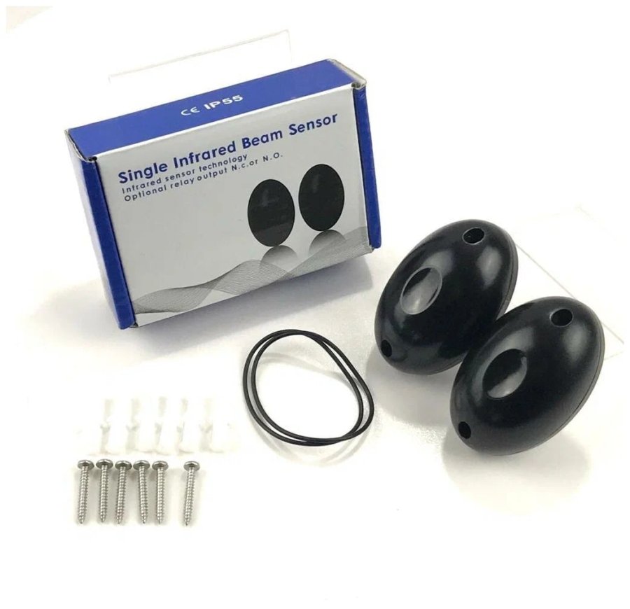 Фотоэлементы (датчики препятствий): Создают инфракрасный луч в проеме ворот. Если луч прерывается (человек, животное или автомобиль), система немедленно останавливает движение створки или начинает ее реверс.