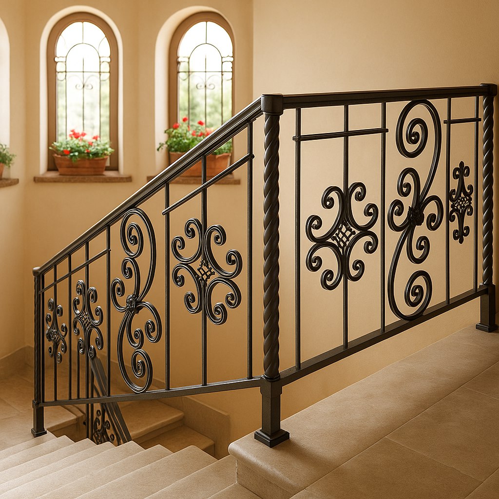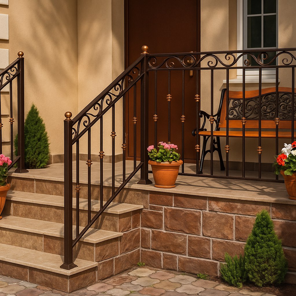 Надежность, стиль и доступность. Это самый универсальный и популярный вариант, сочетающий высокую прочность, широкие возможности для дизайна и привлекательную цену на металлические перила.
