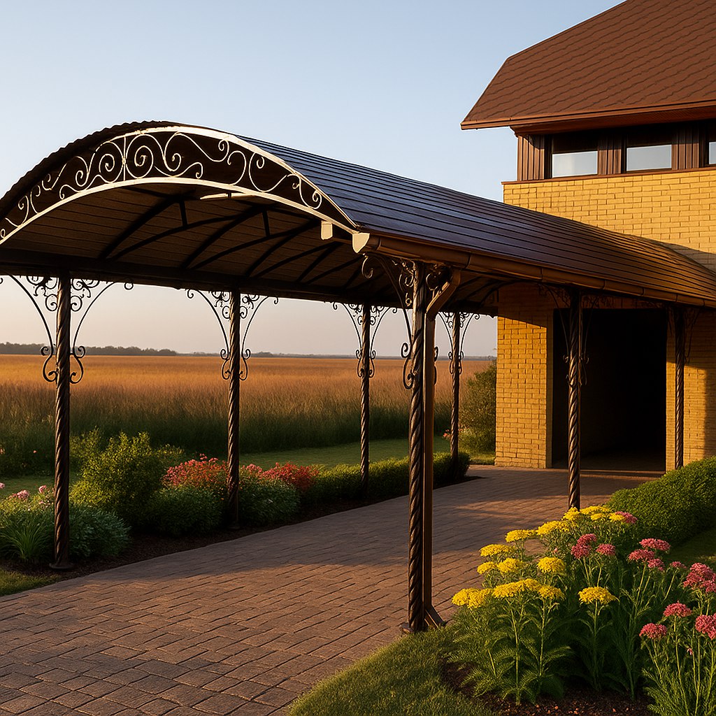 Навесы и козырьки: Изготавливаем прочные и эстетичные навесы для автомобилей, террас, зон барбекю, а также входные козырьки. В качестве покрытия используем поликарбонат, металлочерепицу, профнастил.
