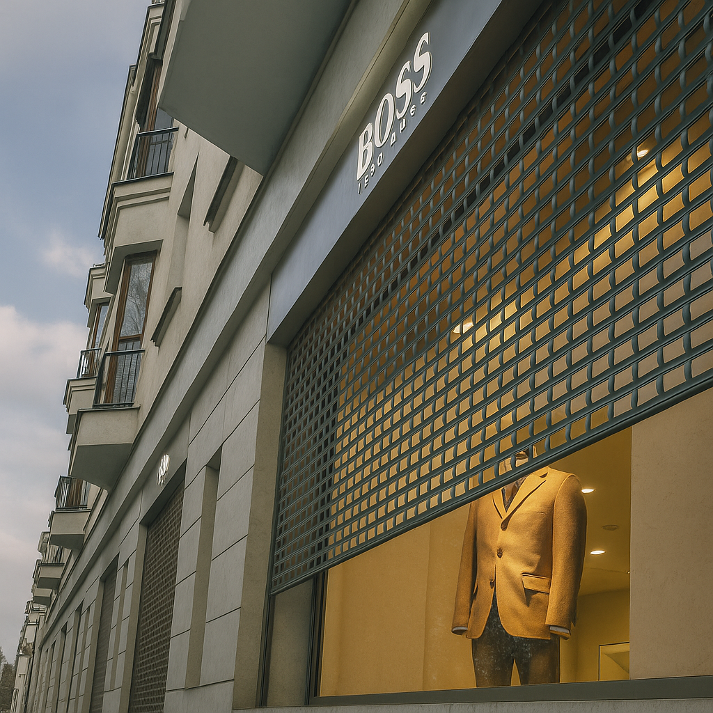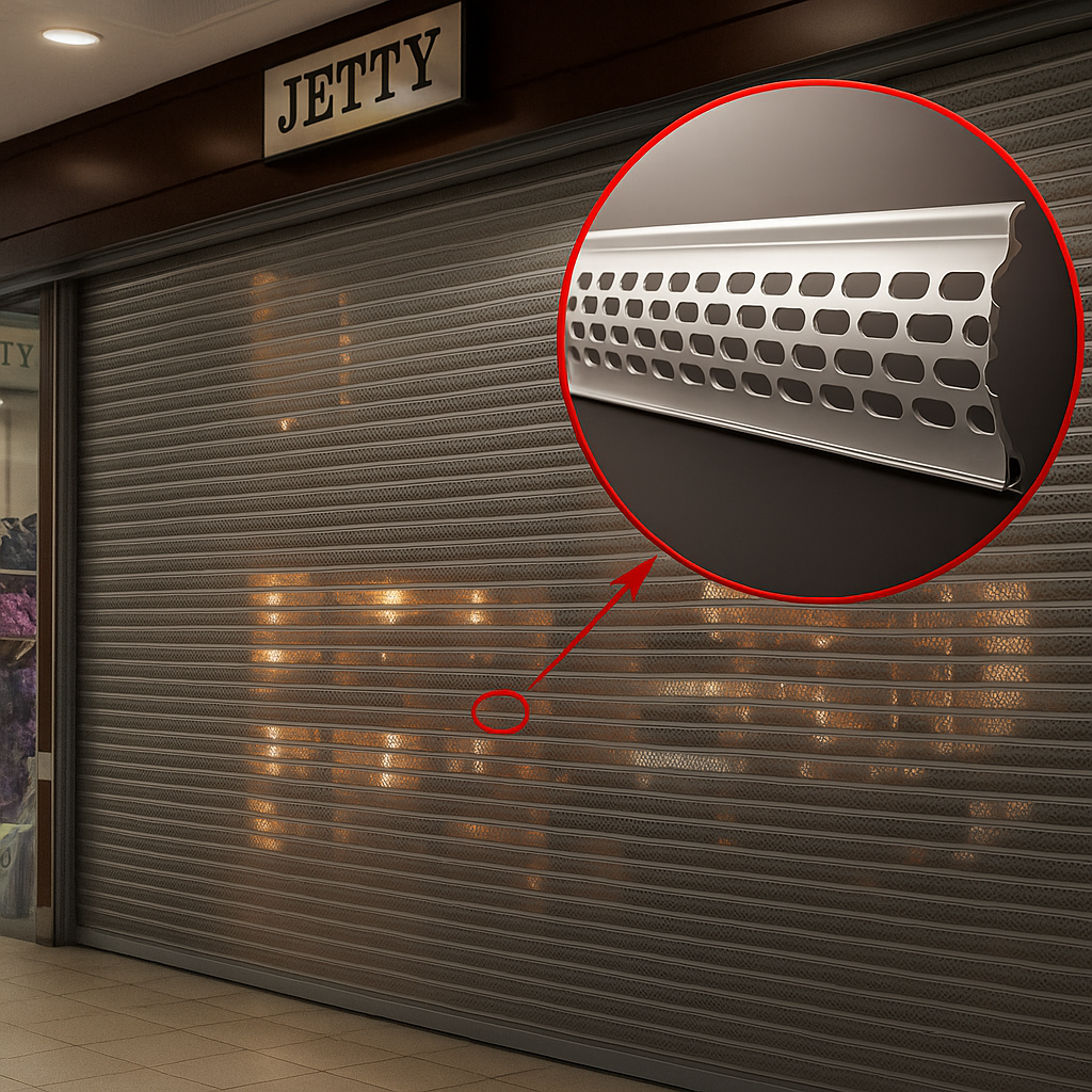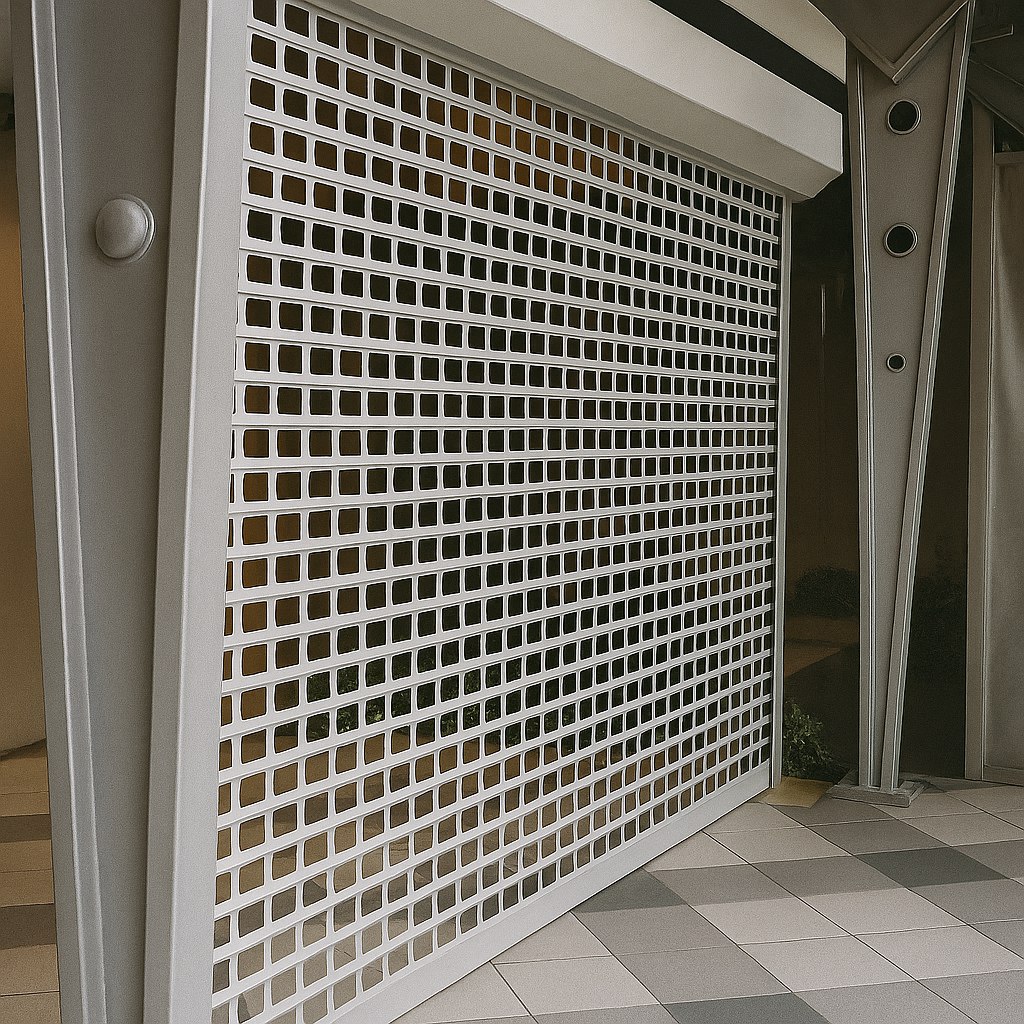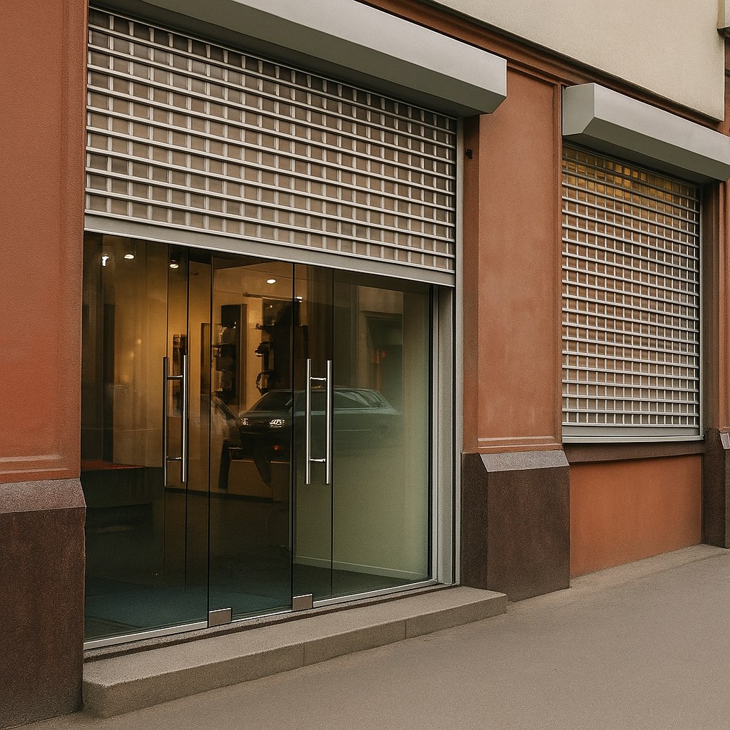 Роллетные решетки из экструдированного профиля — это оптимальный выбор для объектов, где важно одновременно защищать и демонстрировать. Благодаря своей ячеистой структуре, они надежно перекрывают доступ в помещение, но при этом оставляют витрину или витраж на виду. Это особенно актуально для: